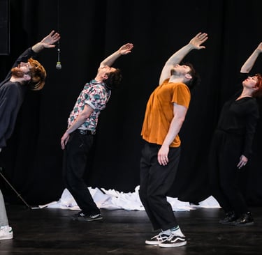 Passé ce prétexte anecdotique, en filigrane, Hexis n'aura de cesse de questionner, au travers de la danse, la musique, le texte et le jeu, les écarts de comportement vis à vis de la norme sociale, artistique, humaine sur un ton parfois léger, parfois ridiculement sérieux, en tout cas pince sans rire mais profondément touchant.